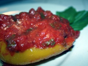 Home » Turkey and Wild Rice Stuffed Peppers » plated pepper